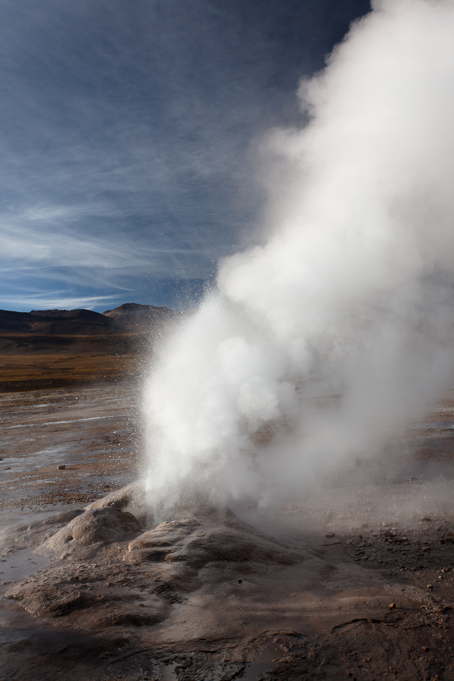 Etant seulement deux familles présentes le soir sur le site des geysers à plus de 4000 mètres d’altitude, jamais nous n’aurions pu imaginer la nuée de 4*4 et de bus qui arriveraient dès 6 heures du matin drainant leur lot de touristes (pour la plupart européens) afin d’ observer les geysers et les eaux bouillonnantes du Tatio (au passage, sur plus de 500 personnes que nous verrons ce jour là, plus de la moitié arriveront trop tard dans la matinée et rateront une bonne partie du spectacle).