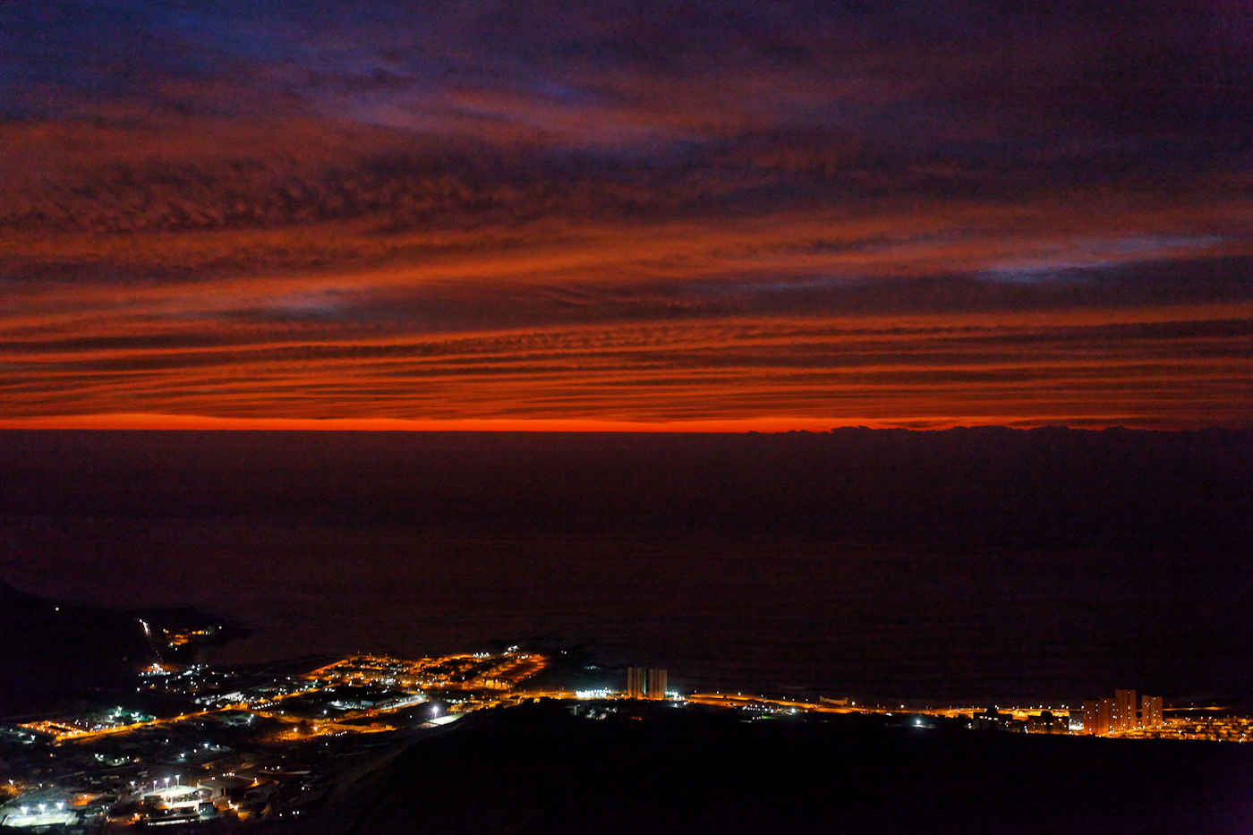 haut de la piste d’envol des parapentes, au dessus d’Iquique… nous ne pourrons pas faire celle de jour !