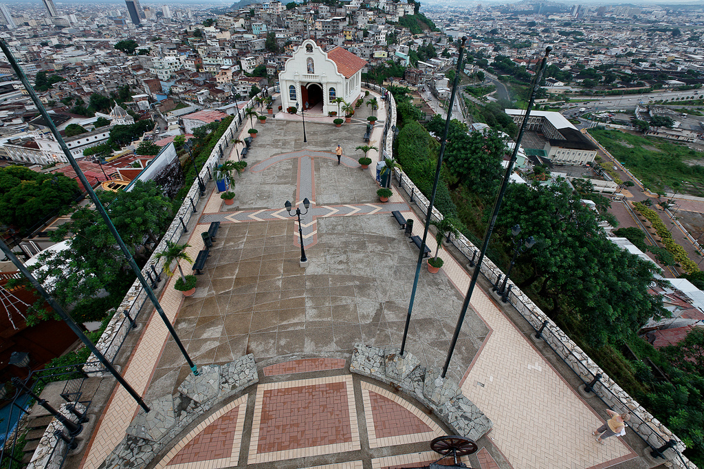 Pendant que le tampicar se refait une beauté (note du mari, le truc grand et musclé qui apparait ponctuellement à côté de l’auteure du jour 🙂 : et que nous multiplions les rencontres locales, qui mettent un point d’honneur à nous aider dans notre marathon garage – pièces détachées, et à nous indiquer avec un mélange de gentillesse et de passion qui est déjà pour nous la marque de fabrique équatorienne, tous les endroits que nous ne devons pas louper en Equateur – Wilson, Nelson et son frère, et notre passionné Marcelo qui a déjà posté des commentaires sur ce site !) , nous flânons un peu dans un Guayaquil chaud et surtout humide, sur Malecon 2000 (une promenade très bien aménagée le long du fleuve), dans le parc Bolivar (où des dizaines d’iguanes nullement effrayés se baladent à côté des passants ), et nous faisons également un tour dans les jolis quartiers colorés et escarpés de Las Penas et du Cerro Santa Ana. Christian en profite aussi pour vendre nos deux encombrants et peu discrets vélos aux deux sympathiques messieurs qui assurent la surveillance de notre véhicule la journée. Nous sommes plutôt contents de quitter cette grande ville (la plus peuplée du pays tout de même), juste après avoir eu la surprise de voir débarquer devant l’hôtel où nous stationnons nos amis les Rejou, venus passer une sympathique soirée avec nous, avant d’entamer leur descente vers le sud. Comme d’habitude, la discussion va bon train autour d’une petite bière (le vin argentin, c’est fini malheureusement !) et de la spécialité du pays, le ceviche (du poisson cru mariné dans du citron vert et bien parfumé de coriandre). Chloé est elle aussi ravie de retrouver enfin son copain Emile et son amoureux Eloi mais ce coup ci, elle est prévenue, c’est hélas la dernière rencontre avant la France…