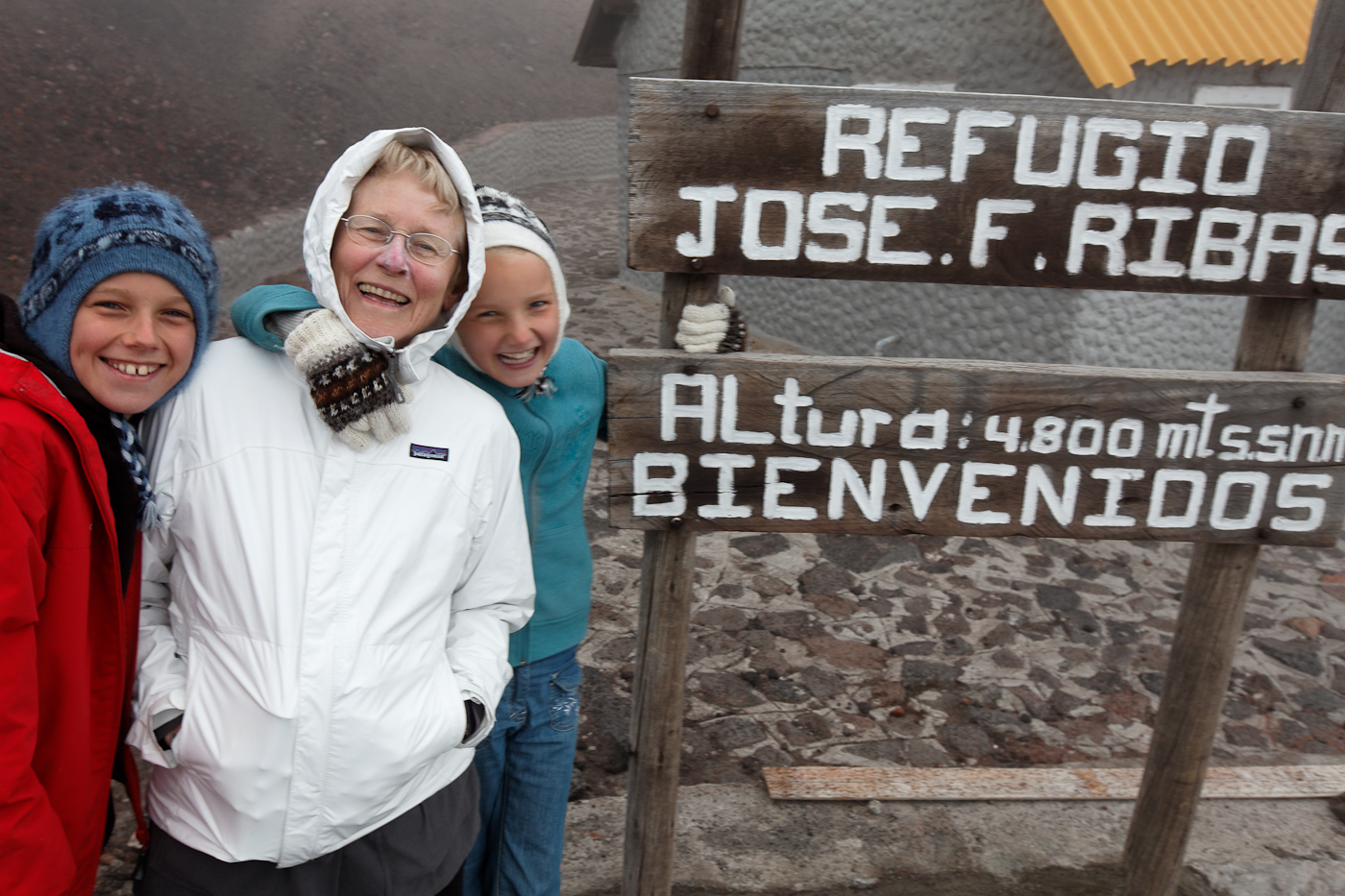 Les jours suivants sont chargés : l’immense marché de Saquisili où on trouve absolument TOUT : des animaux (poulets, cochons d’inde, chatons…) aux pneus en passant par les fruits et légumes, le poisson et l’inévitable artisanat équatorien. Puis nous enchainons par le parc du Cotopaxi, un volcan couronné de neiges éternelles qui ressemble étrangement au mont Fuji au Japon : nous grimpons, sauf trois d’entre nous, au refuge situé à 4800 mètres d’altitude juste au pied du glacier dans du sable volcanique puis redescendons rapidement, le manque d’air à cette altitude se faisant sentir et surtout le brouillard s’étant levé, nous sommes privés de la belle vue tant attendue et tant méritée ! Dommage pour la vue mais bravo à Papi Bernard et Mamie Maté qui sont arrivés en haut, la fleur au fusil !