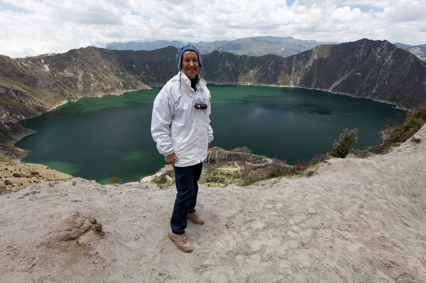 Notre prochaine étape sera une « hacienda » (c’est chic hein ?), celle de la Cienega, à Lasso qui nous permet de rayonner vers la laguna Quilotoa, un lac d’un bleu intense situé dans un cratère à 4300 mètres d’altitude. Nous sommes un peu inquiets pour nos parents qui n’ont jamais mis les pieds à cette altitude et tout spécialement pour « Mamie gâteau », greffée reins-foie il y a trois ans mais qui tient absolument à faire la balade avec nous. Une belle réussite de la médecine française et beaucoup de volonté de sa part ont permis ce moment fort du voyage ! Et tant que vous y etes, allez donc faire un tour sur le site de son association, dédiée au sujet www.rein-echos.org