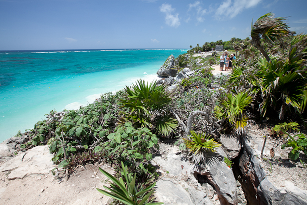 La côte caraïbe du Yucatan, le long de la barrière de corail, est effectivement magnifique mais elle est quasiment totalement bétonnée. Restent quand même quelques plages, dont celle dont vous parle Léna, mais aussi celle d’Akumal où nous aurons la chance de nager quelques temps avec des tortues marines, résidentes connues des lieux – mais pour combien de temps encore ? Malgré les panneaux d’interdiction, nous avons vu des touristes s’amuser quand même à les poursuivre pour les toucher …
