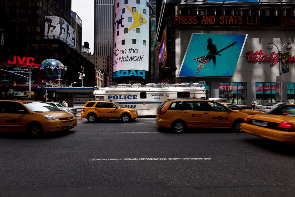 Les heures suivantes passent à toute allure : accueil et repas très sympathique avec la cousine, abandon du tampicar, retour en taxi minivan – tant nous sommes chargés – jusqu’à Manhattan où nous avons réservé un hôtel à deux pas de Central Park et de Time Square, trajet durant lequel nous avons pu entendre les pleurs discrets mais persistants de Léna (on avait tous le coeur gros comme elle) et admirer de nuit la magnifique skyline illuminée, presque surréaliste, le tout dans une ambiance silencieuse plutôt inhabituelle (où sont passées nos deux pipelettes de filles ?)…